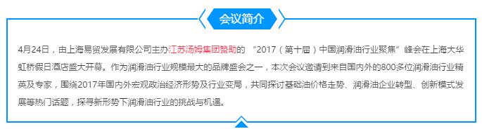 江蘇湯姆集團贊助“2017(第十屆)中國潤滑油行業(yè)聚焦”大會(huì )