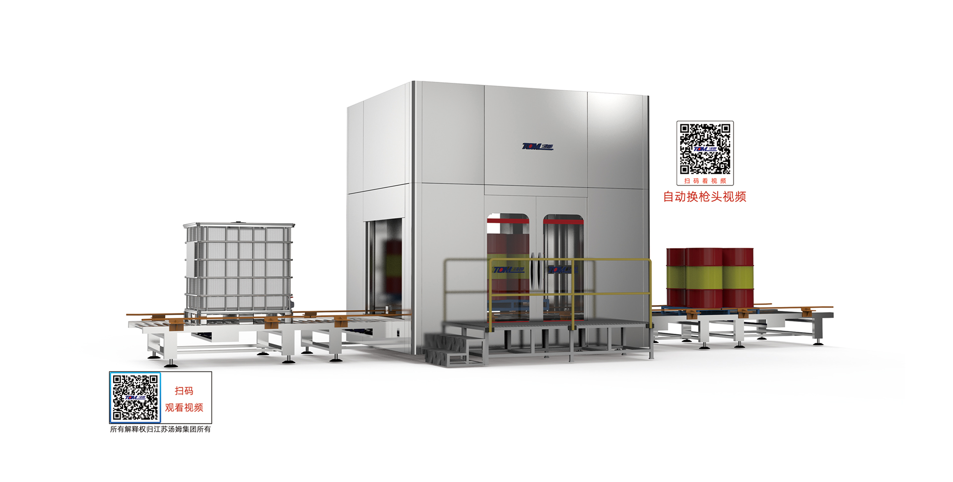 產(chǎn)品名稱(chēng):200L桶/IBC噸桶復合灌裝線(xiàn)(自動(dòng)換槍頭:6把)